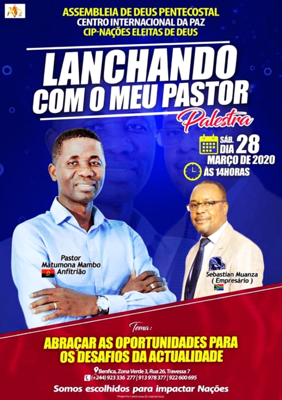 Pastor Sebastião Muanza is an international speaker, writer, song-writer, music minister and an ordained pastor. He fosters integrity, orderliness, discipline, perfection, excellence in accordance with the immutable word of God.